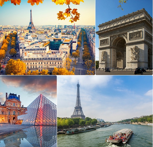 Nhắc đến nước Pháp là nhắc đến Paris, kinh đô ánh sáng, phồn hoa và kiêu kì. Vẻ đẹp của Paris hoa lệ đã đi vào không biết bao nhiêu tác phẩm thi - ca - nhạc - họa. Hãy dành thời gian khám phá vẻ cổ điển của thủ đô và trải nghiệm phong cách Parisien (người Paris) thực thụ nhé. Những thắng cảnh nổi tiếng của Paris phải kể đến: Khải Hoàn Môn, đại lộ Champs- Élysées,Tháp Eiffel, Nhà thờ Đức Bà Paris và hàng loạt bảo tàng ấn tượng : Louvre, Picasso, Orsay, Cluny…Và bạn đừng bỏ lỡ ngắm nhìn một Paris rất khác khi dạo thuyền trên sông Sein thơ mộng nhé.