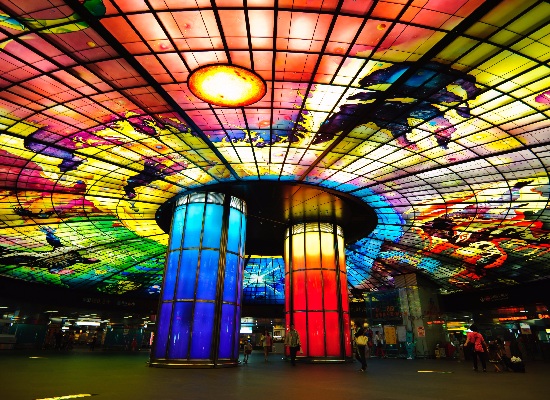 Nhưng kho báu thực sự là dưới lòng đất - Dome of Light rộng 2.180 m2, một bức tranh tường bằng thủy tinh được dựng trên trần nhà ga. Trần nhà đầy màu sắc này được tạo ra bởi nghệ sĩ người Mỹ gốc Ý Narcissus Quagliata.