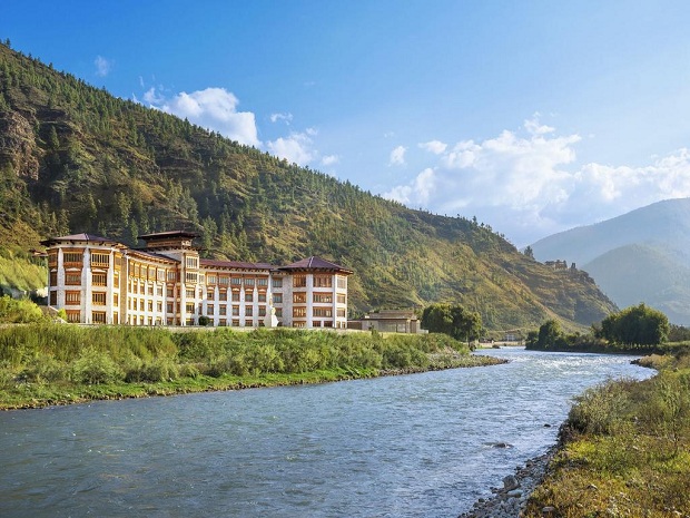 Cách sân bay quốc tế duy nhất của Bhutan chỉ 3,5 km, cũng thuộc chuỗi khách sạn resort Le Meridien, nhưng đại diện tại thành phố Paro này được yêu thích hơn cả. Khác với người anh em ở thủ đô Thimphu, Le Meridien Paro Riverfront có vị trí đắc địa với những ai yêu thiên nhiên : trước mặt là dòng sông, sau lưng thì tựa núi. Kiến trúc của khách sạn này kết hợp hài hòa của đá và gỗ, của nội thất châu Âu và phong cách trang trí đậm chất Bhutan. Nói về dịch vụ, Le Meridien Paro Riverfront xứng đáng chuẩn 5 sao với phòng nghỉ rộng rãi, trang bị nhà tắm tối tân, nhân viên phục vụ trực 24/7, đi kèm với đó là quầy bar, nhà hàng Á- Âu, hồ bơi trong nhà, massage, spa thảo dược, thư viện,… Ngoài ra, bạn có thể tham gia triển lãm hay thuê xe đạp dạo quanh ngắm cảnh cũng rất thú vị.