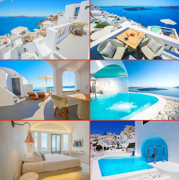 Santorini – hòn đảo của những câu chuyện thần thoại Hy Lạp được được xem là viên ngọc quý của vùng biển Aegean. Thiên nhiên ban cho Santorini cảnh đẹp không nơi đâu có được nhưng cũng lấy đi của nó rất nhiều, từ đất đai cằn cỗi, những đợt núi lửa phun trào trong quá khứ,… Nhưng chính địa chất khác biệt đã tạo cảm hứng để người dân ở đây tạo nên những khách sạn, resort tuyệt vời như trong truyện cổ tích.