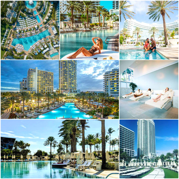 Fontainebleau Miami Beach nằm ngay sát bãi biển Miami thuộc bang Florida của nước Mỹ. Không chỉ ghi điểm với du khách ở vị trí lí tưởng mà không gian của khu nghỉ dưỡng còn hấp dẫn và mang lại rất nhiều trải nghiệm khó quên. Không gian hồ bơi ngoài trời, khu spa, quầy bar, nhà hàng giúp bạn có khoảng thời gian thoải mái nhất khi đi du lịch Mỹ. Đến với khách sạn Fontainebleau Miami Beach bạn nên chọn những phòng hướng biển để ngắm cảnh mặt trời mọc đẹp tuyệt vời trên đất Mỹ.