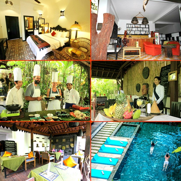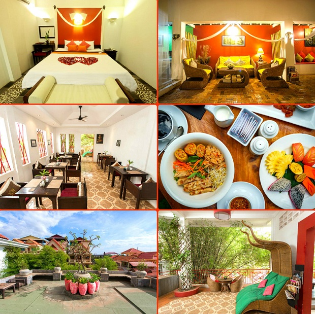 Đặt phòng tại đây, quý khách sẽ có cơ hội trổ tài nấu nướng qua lớp dạy nấu các món ăn truyền thống của Siem Reap và Campuchia. Đồng thời tận hưởng các dịch vụ chất lượng như hồ bơi ngoài trời xanh sạch, phục vụ phòng 24 giờ, miễn phí wifi tất cả các phòng, an ninh đảm bảo và cửa hàng quà tặng đặc biệt,…
