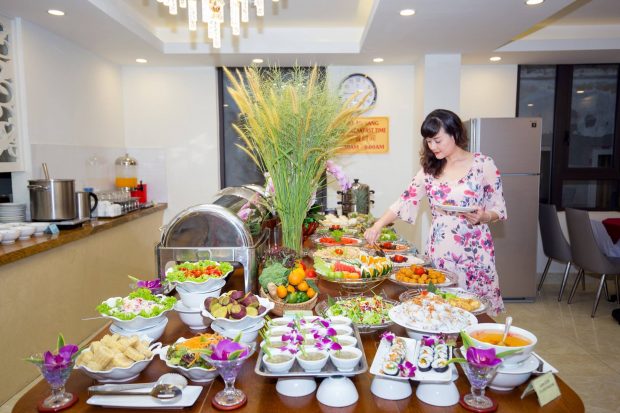 Ngoài ra khách sạn còn có nhà hàng lớn với sức chứa lên đến 120 khách, luôn sẵn sàng phục vụ các món ăn Âu - Á.