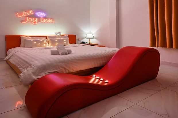 Sẽ không quá khi nói Joy Inn Hotel là khách sạn có ghế tình yêu ở Tân Bình đẳng cấp nhất. Quyến rũ và táo bạo là phong cách của mỗi không gian yêu cho các cặp đôi. Những ánh đèn lấp lánh, chiếc bồn tắm lát gạch đá pha lê tạo ra sức hút cho không gian. Ngọn lửa đam mê tình yêu của bạn và người ấy chắc chắn sẽ được đốt cháy tại đây.