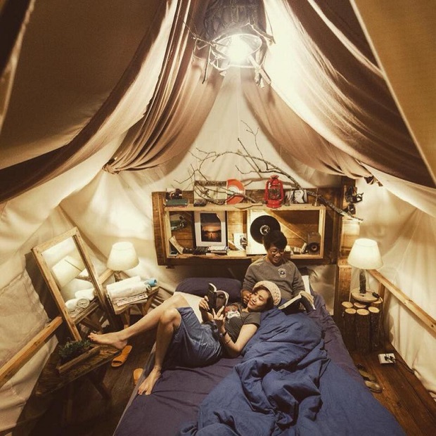 Giường, bàn ghế, kệ sách, đèn ngủ,... đều có đủ trong mỗi căn lều để đảm bảo tiện nghi. Bên ngoài là sân hiên được trang bị ghế ngồi. Từ đây, du khách có thể ngắm nhìn thung lũng tuyệt đẹp của thành phố. Nằm nép mình trong con hẻm góc khuất, nơi đây đem đến cho du khách một trải nghiệm bình yên đến lạ thường mà không phải khách sạn ở Đà Lạt nào cũng có thể mang lại.