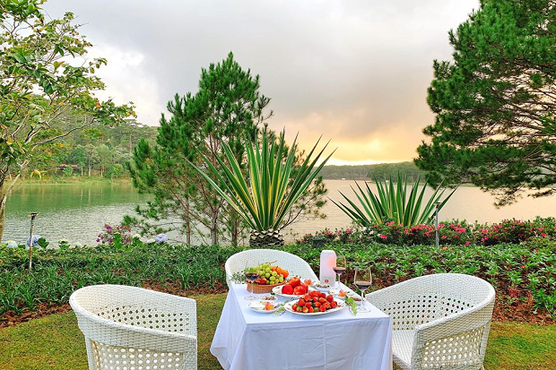 Còn gì tuyệt vời hơn khi cùng người thương thưởng thức ly sâm banh, những trái cây mang đậm hương vị Đà Lạt ở một không gian lãng mạn này. Khách sạn sẽ set up đầy đủ bàn ghế tại sân vườn bao gồm cả nến và hoa để tăng thêm phần thú vị trong buổi hẹn hò của bạn và người ấy.