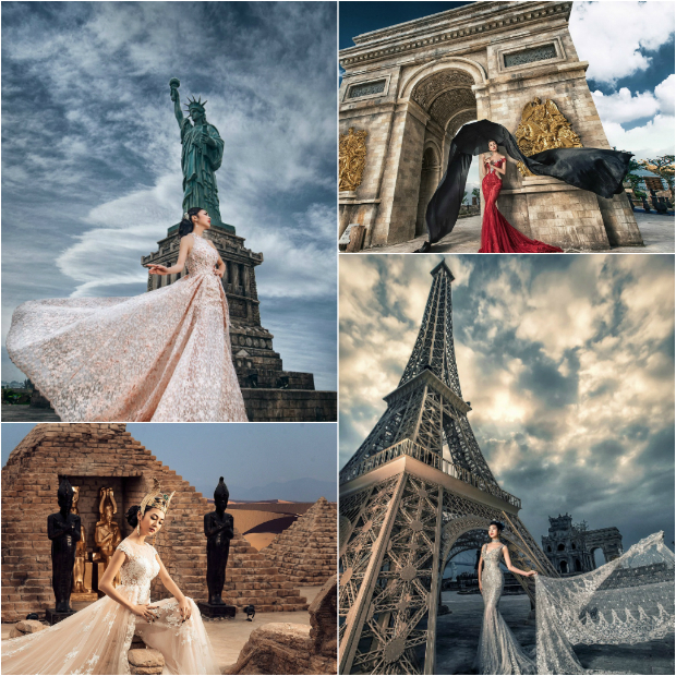 - Check in, chụp hình siêu đẹp ở "điểm check in vàng: Khải Hoàn Môn, Kim Tự Tháp, Chùa Một Cột được dát vàng, Tháp Eiffel, Tượng Nữ thần Tự do, Cối xay gió, Hải đăng,...
