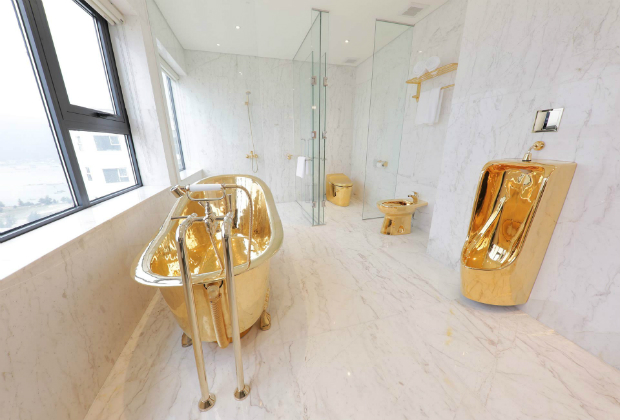 Ngay cả nhà vệ sinh cũng sử dụng chất liệu vàng thật 100%.