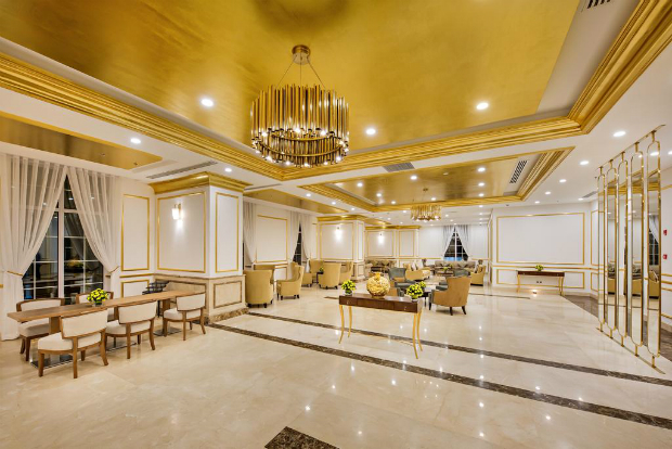 Sảnh trước khách sạn cũng được dát vàng tạo vẻ ngoài nguy nga, tráng lệ. - Ảnh: Internet.