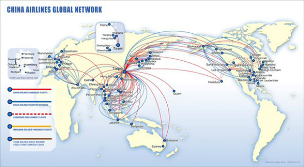 Mạng lưới đường bay rộng khắp của China Airlines - Ảnh: internet