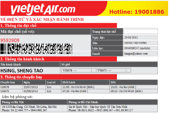 Nhưng để chắc chắn nhất, nên lấy mã code và gọi điện tới tổng đài của hãng hàng không mà quý khách đặt vé để kiểm tra.