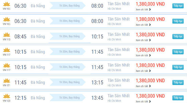 - 1.3 Lịch bay từ Đà Nẵng đi Sài Gòn hãng Vietnam Airlines