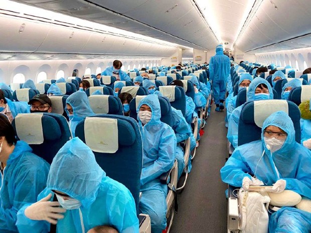 Chuyến bay đưa người về nước và tuân thủ quy định an toàn trong mùa dịch bệnh. Ảnh internet