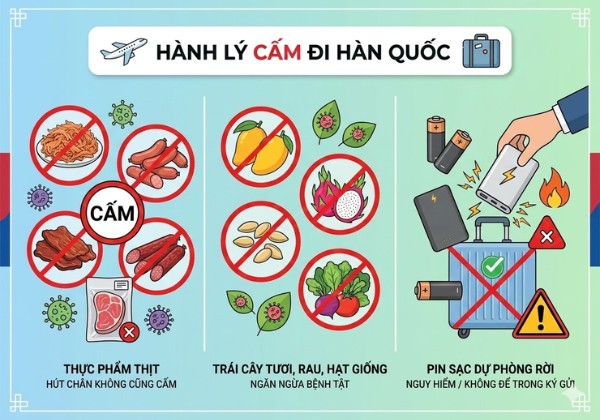 Thực phẩm bị cấm: Tuyệt đối không mang theo các loại thực phẩm làm từ thịt (ruốc/chà bông, xúc xích, lạp xưởng, thịt khô, nem chua) dù đã hút chân không.