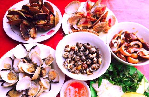 Vì là thành phố biển nên các hải sản như ốc, xìa, xò là những món ăn không thể bỏ qua. Những tô ốc luộc nóng hổi, thơm mùi sả hay các bát ốc len xào dừa sênh sếnh, đĩa hàu nướng, xìa nướng với mỡ hành... sẽ làm bạn nhớ mãi hương vị. Để thưởng thức các món hải sản tươi ngon này thì du khách có thể đến các quán ăn như: Ốc Bảy Thơm, Ánh ốc,Ốc Thúy Kiều 5D, 94 Mai Xuân Thưởng...