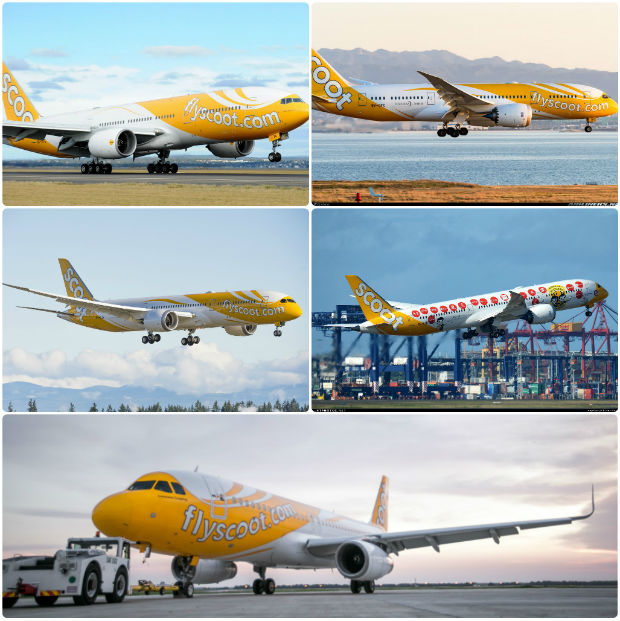 Là hãng hàng không trực thuộc Singapore Airlines, Scoot nhận được sự hỗ trợ đội ngũ tàu bay rất lớn từ công ty mẹ. Hãng bắt đầu hoạt động với đội bay chỉ có 3 máy bay Boeing 777-200 nhưng đến nay hãng đang sở hữu đội bay với hơn 40 máy bay hiện đại gồm các loại máy bay Airbus và Boeing như: Airbus A319-100, Airbus A320-200, Airbus A320neo, Boeing 787-8, Boeing 787-9,… Scoot cũng đang tiến hành đặt hàng hàng loạt máy bay đời mới, hiện đại để nâng cấp quy mô đội bay của hãng.