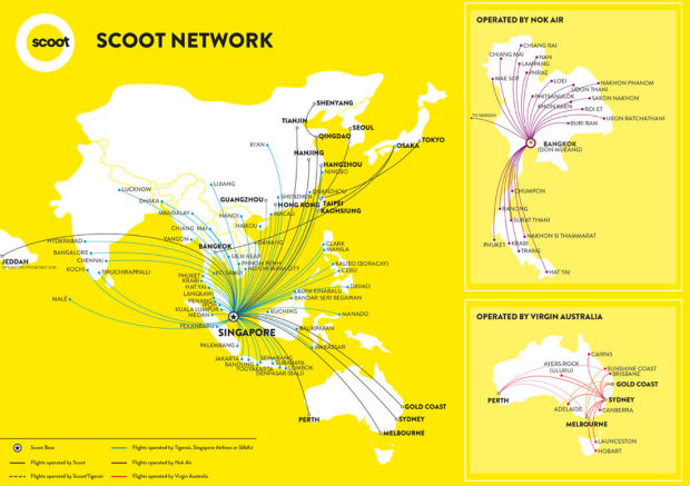 Mạng lưới đường bay của Scoot rộng khắp châu Á và một số quốc gia trên thế giới - Ảnh: internet