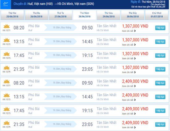 Để giúp bạn linh hoạt hơn trong chuyến bay từ Huế đi Sài Gòn thì có thể tham khảo thông tin chặng bay và giá vé dưới đây: