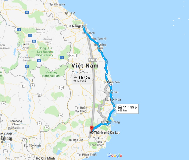 KHOẢNG CÁCH TỪ ĐÀ NẴNG ĐẾN ĐÀ LẠT