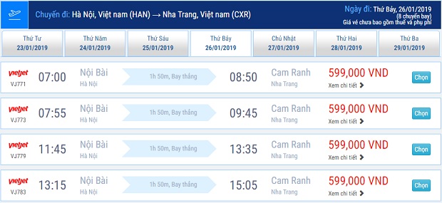 Vé máy bay Hà Nội đi Nha Trang của Vietjet Air trong ngày 26/01/2023.
