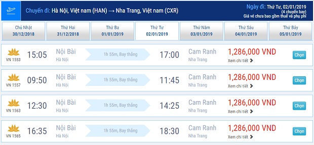 Vietnam Airlines thì áp dụng mức giá rẻ nhất từ 1,286,000 đồng/người/chiều và hầu như có sẵn ở tất cả các ngày trong tháng 1. Như vậy, bạn chỉ cần đặt vé sớm để chọn được một hành trình ưng ý.