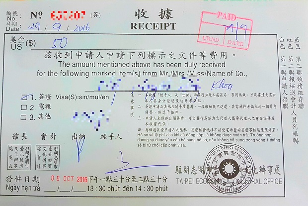 Giấy hẹn nhận kết quả visa Đài Loan. (Ảnh: Internet)