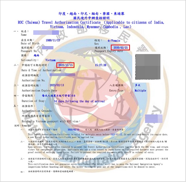 *Lưu ý: Khi nhập cảnh Đài Loan, ngoài mang theo bản in visa Đài Loan này. Bạn cần chuẩn bị các giấy tờ sau: