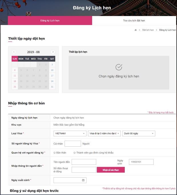 👉 Đặt lịch hẹn online: Khi xin visa Hàn Quốc, bạn bắt buộc phải đặt lịch hẹn online trước khi nộp hồ sơ xin visa 5 năm, 10 năm. Để đặt lịch hẹn, bạn vui lòng truy cập vào website: